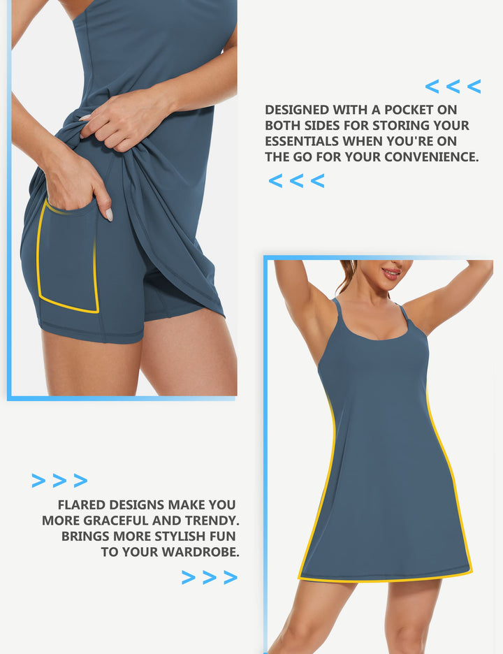 ¿wֳuilt-in Shorts¿w?The built-in romper provide great comfort and protection when you are doing exercise. The workout dress has 9 way Stretch, a perfect A-line contour, can cover the excess flesh on the belly.